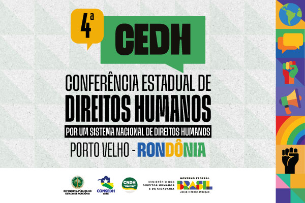 A Defensoria Pública do Estado de Rondônia (DPE-RO) participará da 4ª Conferência Estadual de Direitos Humanos (4ª CEDH/RO), que será realizada nos dias 15 e 16 de outubro em Porto Velho. O evento tem como tema central “Por um Sistema Nacional de Direitos Humanos: consolidar a Democracia, resistir aos retrocessos e avançar na garantia de direitos para todas as pessoas”.