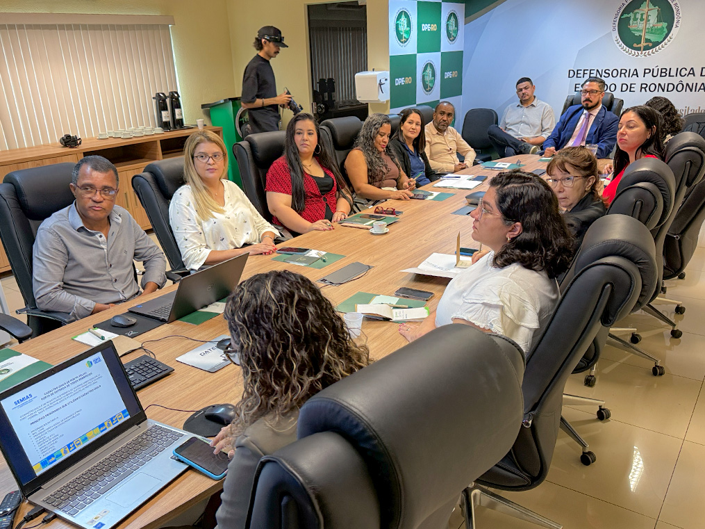 A reunião foi conduzida pelo coordenador do NAS, defensor público Sérgio Muniz Neves, e contou com a presença da secretária adjunta da pasta municipal, Tercia Brasil. A gestora compareceu à DPE-RO acompanhada de sua equipe técnica, composta por cerca de nove diretores e especialistas das divisões da secretaria.
