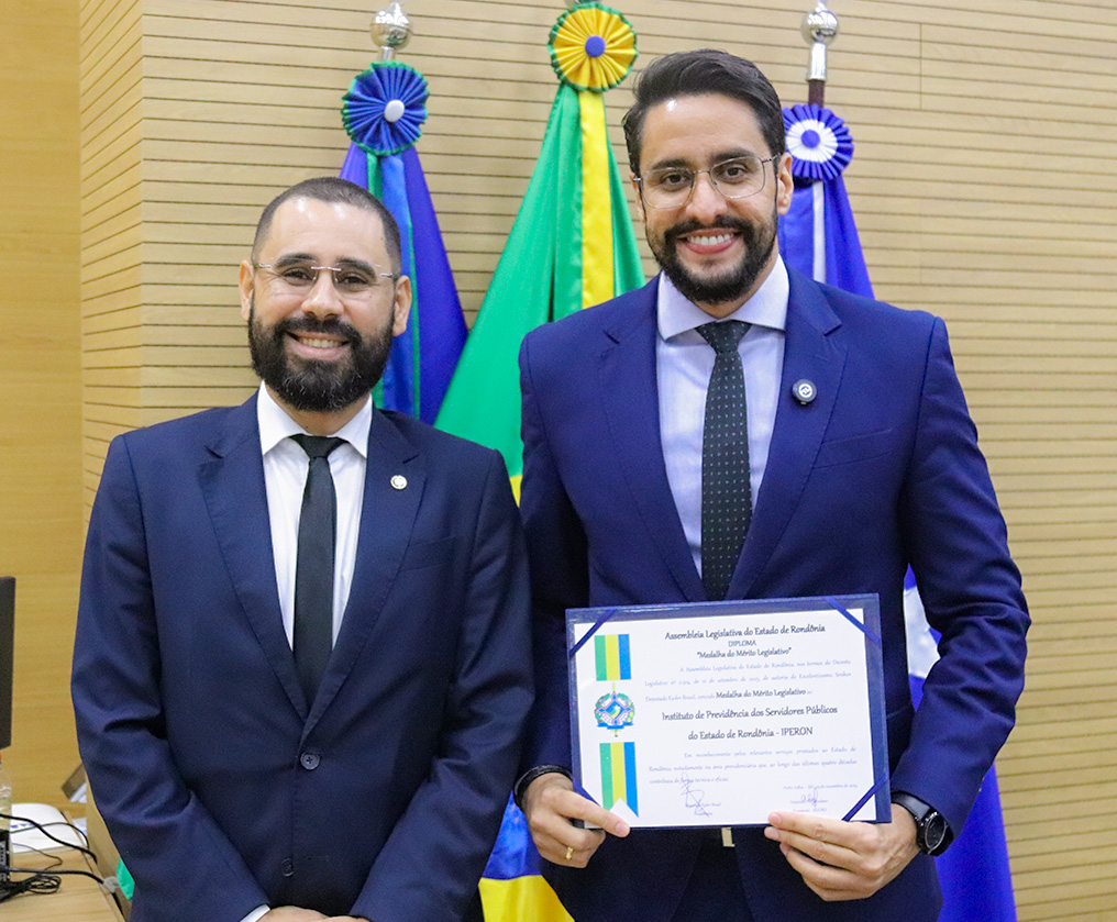 Durante a cerimônia, o presidente do IPERON, Tiago Cordeiro, recebeu a Medalha do Mérito Legislativo pelos relevantes serviços prestados ao funcionalismo público e pela eficiência demonstrada na regularização das aposentadorias dos servidores estaduais. O Instituto tem se destacado nos últimos anos pela modernização da sua gestão administrativa e financeira, pela adoção de boas práticas de governança e pelo fortalecimento dos mecanismos de controle interno e transparência.