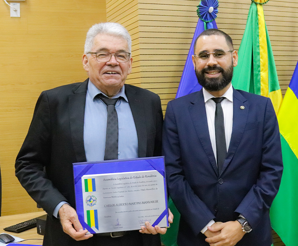 Na mesma sessão, o servidor da Assembleia Legislativa, Carlos Manvailer, foi agraciado com a Medalha do Mérito Cultural e também com a Medalha do Mérito Legislativo, em reconhecimento à sua trajetória profissional e ao lançamento do livro “Percorrendo os 40 anos de história do Parlamento Rondoniense”. A obra, fruto de extensa pesquisa, retrata a evolução histórica do Estado de Rondônia desde os tempos de território federal até a consolidação como unidade federativa, abordando as principais leis ordinárias e complementares aprovadas pela Casa de Leis, além das constituições estaduais de 1983 e 1989.