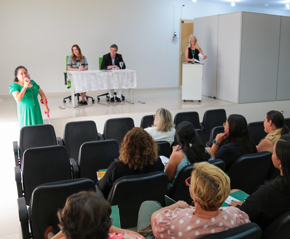 A defensora pública Rithyelle Medeiros Bissi do Nascimento, Diretora de Gestão Estratégica, representou a Defensoria Pública-Geral durante a solenidade. Em sua fala, ressaltou que “o Curso de Defensores e Defensoras Populares faz parte da educação em direitos, um dos pilares do Planejamento Estratégico da DPE-RO e tem por finalidade promover a educação em direitos humanos, capacitando lideranças locais para diagnosticar violações de direitos, orientar a população sobre o acesso a seus direitos a auxiliar a comunidade encontrando soluções extrajudiciais, quando possível.”