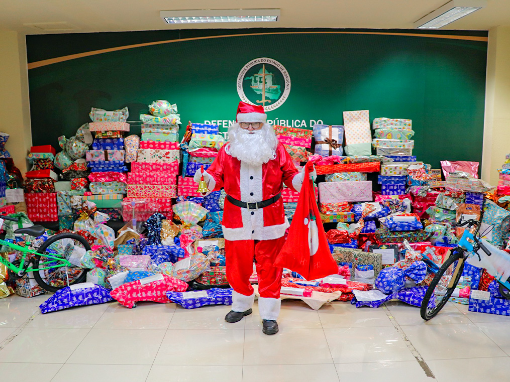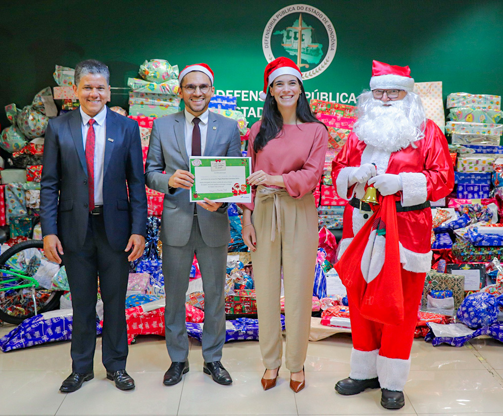 Nesta terça-feira, 9 de dezembro, a Defensoria Pública do Estado de Rondônia recebeu a visita do Papai Noel dos Correios para a entrega dos presentes arrecadados por membros(as), servidores(as) e estagiários(as) durante a campanha Papai Noel dos Correios. Em 2025, a instituição adotou 360 cartinhas, demonstrando o forte engajamento de toda a equipe com o Natal de centenas de crianças.