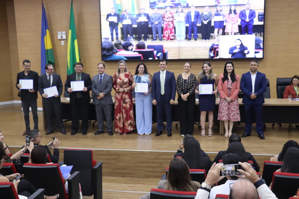 A Defensoria Pública do Estado, por meio do Núcleo de Resolução Extrajudicial de Conflitos (Nurec), participou da homenagem da Assembleia Legislativa Estadual aos conciliadores e mediadores do Tribunal de Justiça de Rondônia que atuam na promoção do diálogo e na pacificação social no estado, em solenidade que também homenageou o Sindicato dos Trabalhadores Ativos, Inativos, Pensionistas e Transpostos para os Quadros da União no Poder Judiciário de Rondônia (Sinjur) e a CB PM Fábia Regina Araújo de Lima.