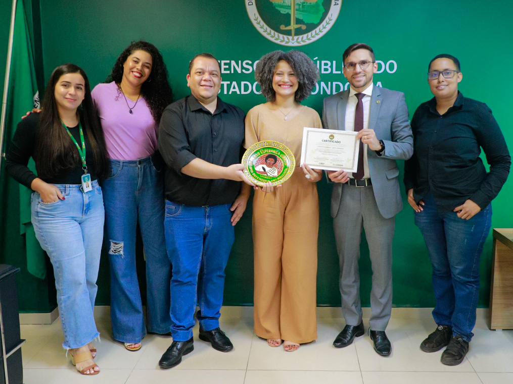 A Ouvidoria-Geral da Defensoria Pública de Rondônia realizou a entrega do Selo Esperança Garcia a instituição e representantes da sociedade civil, a Coletivo Sankofa – Arte e Memória. O selo é promovido pelo Conselho Nacional de Ouvidorias de Defensorias Públicas do Brasil (CNODP), destinado a premiar instituições que adotam políticas de equidade racial e que fomentam estratégias de intervenção na ordem de exclusão social das pessoas não brancas.